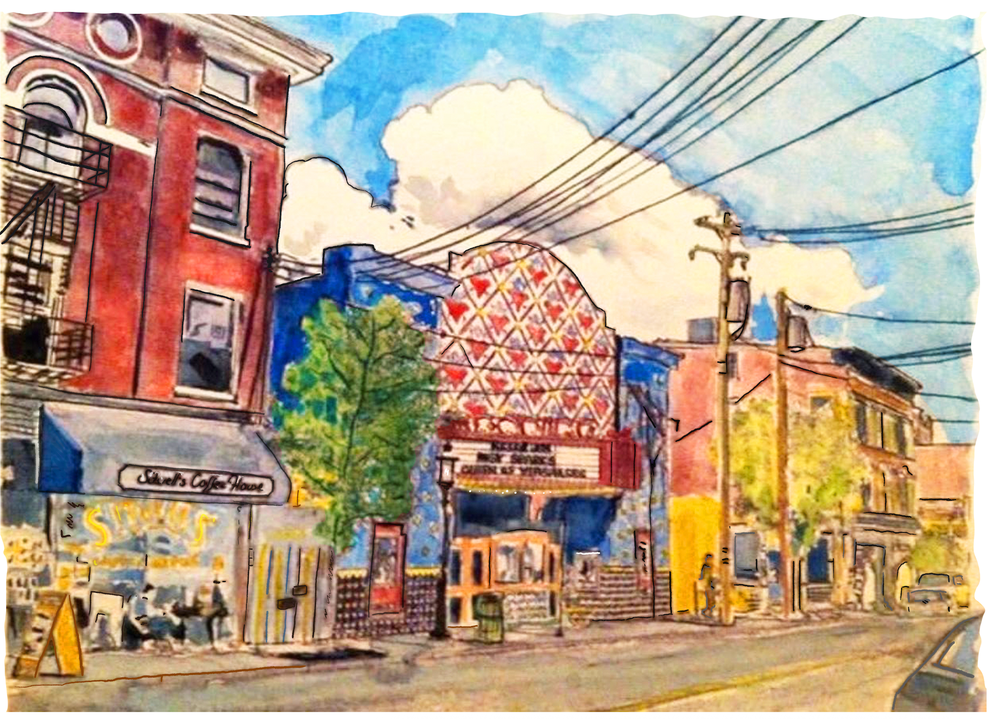 This Ludlow landmark in Cincinnati's historic Gaslight District is handpainted on 140lb. paper. 11" x 15" I also have high quality giclée prints available. These prints are high-quality digital art reproduction made with advanced inkjet printers, using archival pigment-based inks sprayed onto fine art paper or canvas for exceptional color accuracy, detail, and longevity. Prints are just $19.99