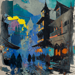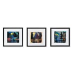 Sunrise At The Market set of 3 framed watercolor paintings